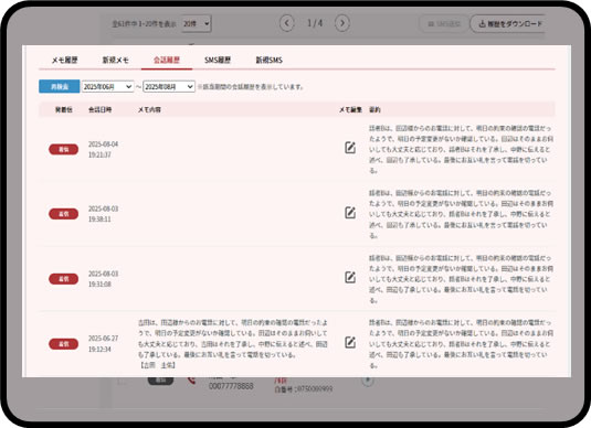 電話をかけた先の電話番号を一覧で表示! 誰が何の用件で電話をしたかをパッと把握!